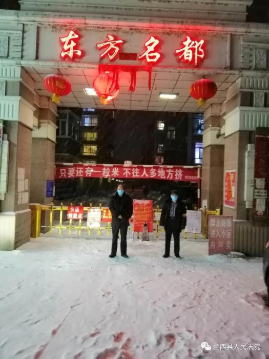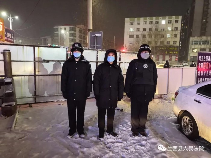 近日兰西降下大雪。兰西法院值守干警依然坚守在小区门口,分包卡点等卡点日夜值班,继续对社区居民进行疫情防控排查,全面加强各小区防控工作,做到守土有责、守土尽责,为全县打赢疫情阻击战履好职、尽好责。