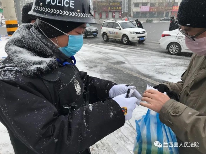风雪飘过,天寒地冻,兰西法院干警始终坚守在防疫前线,努力守好小区出入口,严格按照“逢车必查、逢人必检、逢疑必核”的原则进行检查,用实际行动保障县城人民群众生命安全和身体健康。在坚决打赢这场战“疫”的时期,他们是坚守在风雪中最美的逆行者。